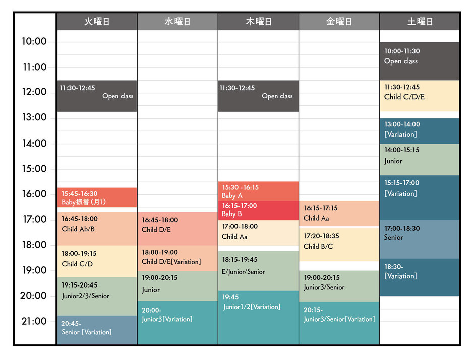 ※都合により変更になる場合があります。教室内の案内、もしくはブログをご確認ください。